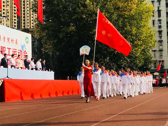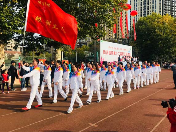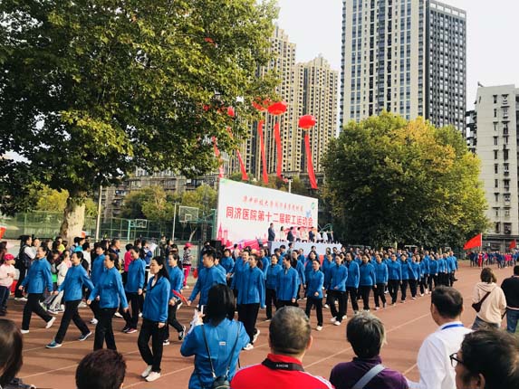 近日,随着秋风萧瑟,同济医院第十二届职工运动会在同济医学院操场举行,会场传来激越高昂的运动员进行曲。医院职工以部门工会为单位,以步履整齐、统一的服装,结合各自的特色展现着同济人“严谨求实、开拓创新、一心赴救、精益求精”的精神风貌,带着象征着全体同济人追求卓越、勇立潮头、奋发图强、锐意进取的运动会会标昂首阔步地步入会场。