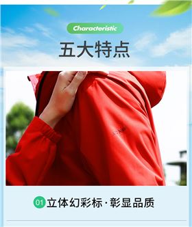 此款梭织风衣26647/26648采用消光桃皮平纹面料,立体幻彩标,彰显品质;防水拉链,增加防护;反光烫标,时尚安全;高密防风面料,防风透气;后背风琴反光,伸展自如并安全时尚。