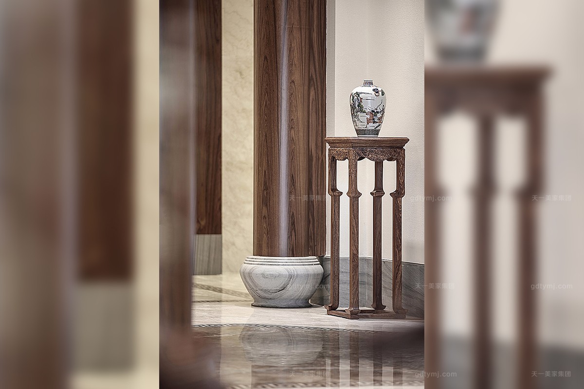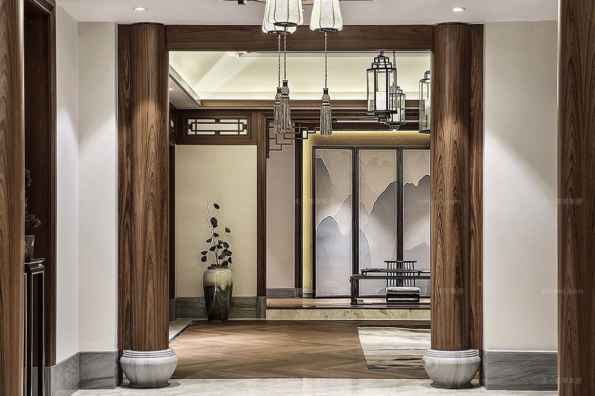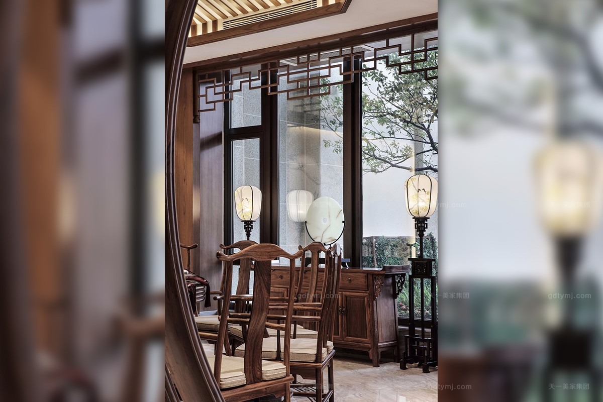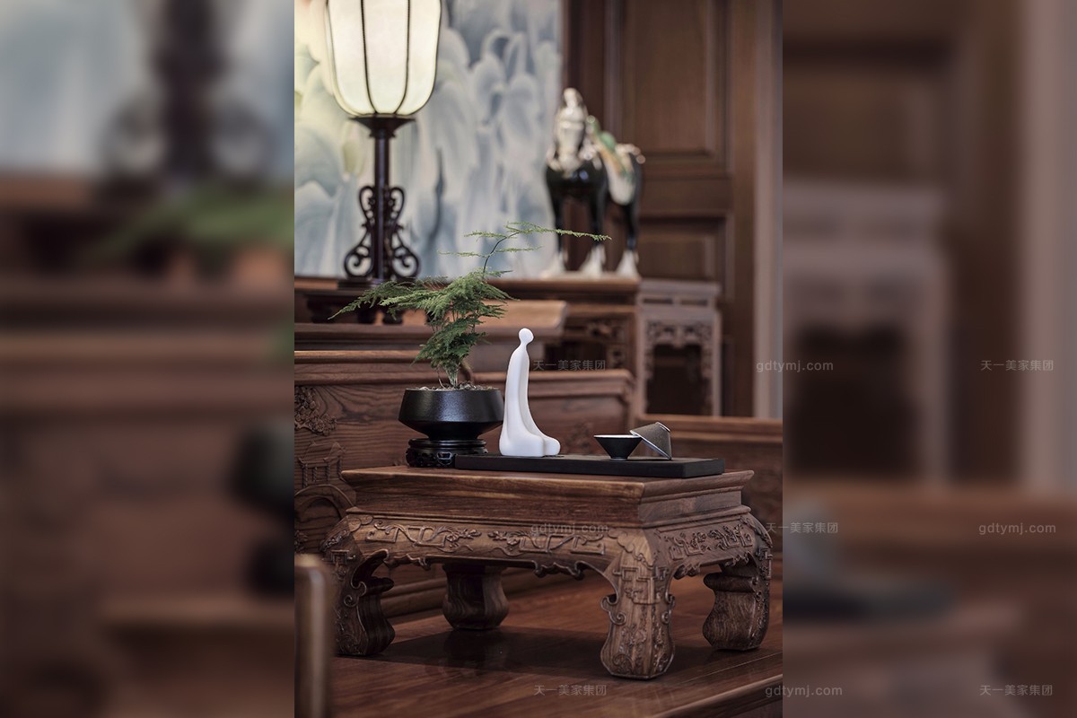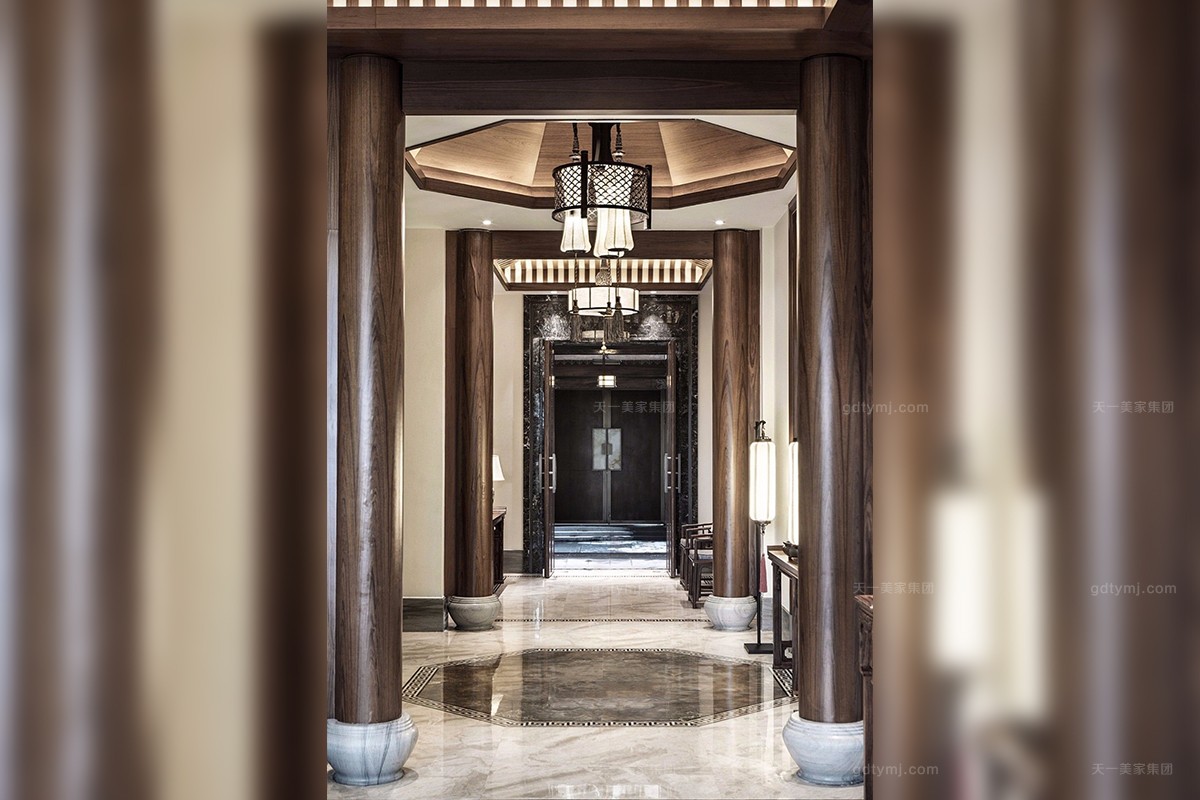 项目理念:本案木饰部分使用柚木实木打蜡的工艺,环保、自然,各种中式符号的造型细节,散发着岁月的淳香。紫檀木打造的明清式星欧注册,雕花做工精良,有繁有简,造型优美。特别甄选、定制的各种玉石、手工羊毛地毯、柚木、贝壳马赛克、胡桃木地板、玉龙化石等良材美质,一同构成了独特的物象之美,并衍生出丰富的传世大宅底蕴。