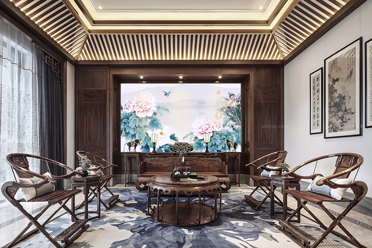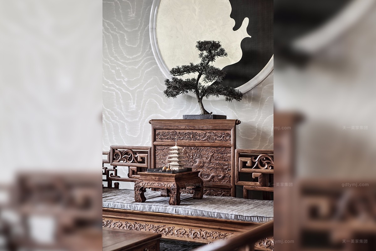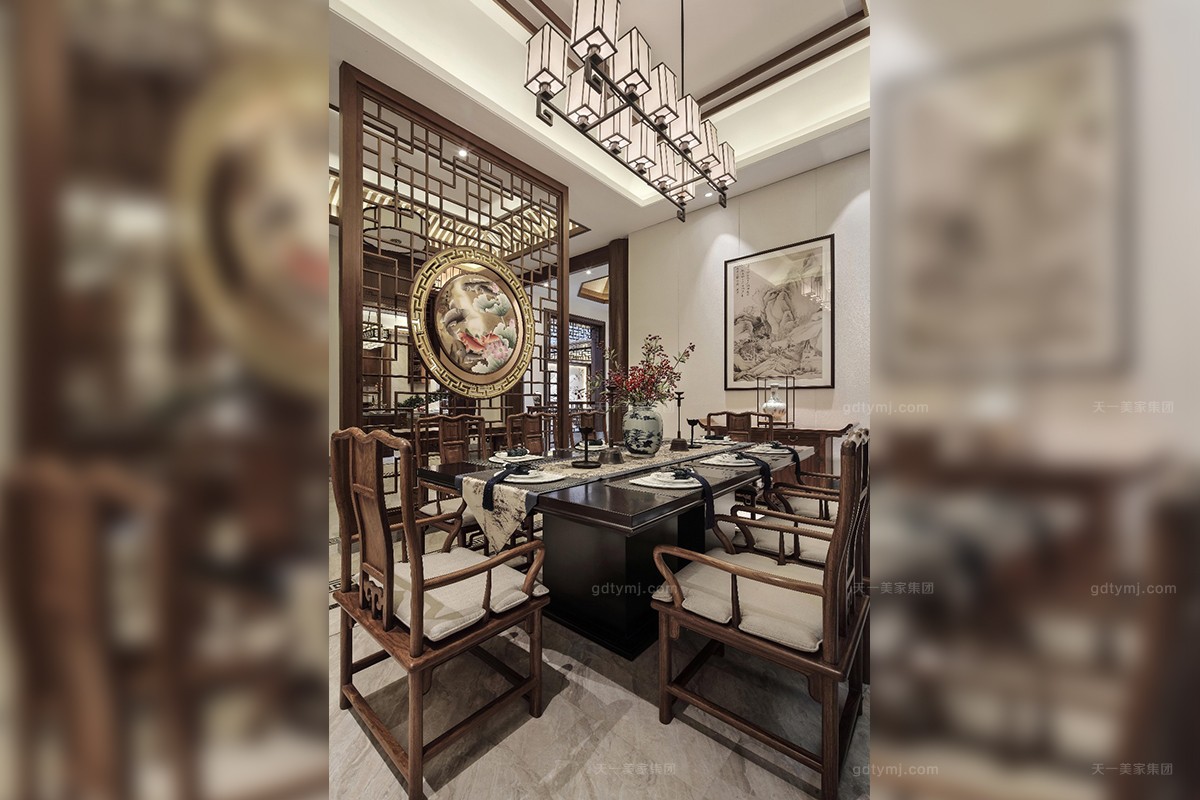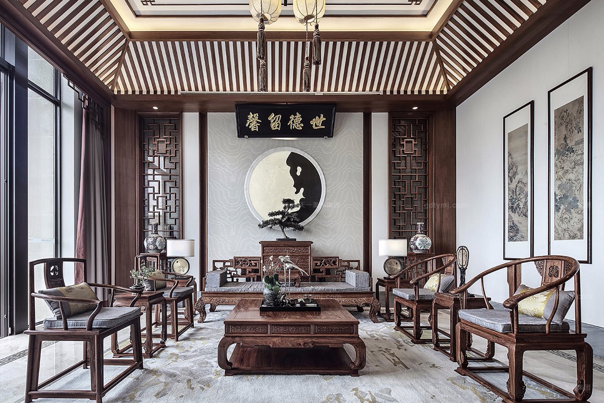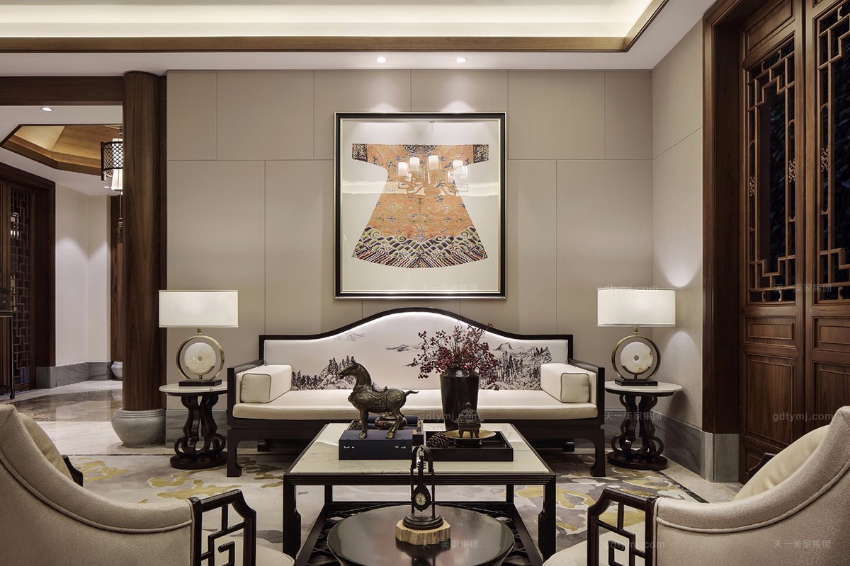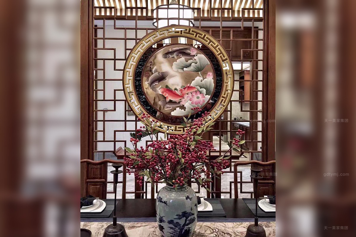 项目理念:本案木饰部分使用柚木实木打蜡的工艺,环保、自然,各种中式符号的造型细节,散发着岁月的淳香。紫檀木打造的明清式星欧注册,雕花做工精良,有繁有简,造型优美。特别甄选、定制的各种玉石、手工羊毛地毯、柚木、贝壳马赛克、胡桃木地板、玉龙化石等良材美质,一同构成了独特的物象之美,并衍生出丰富的传世大宅底蕴。