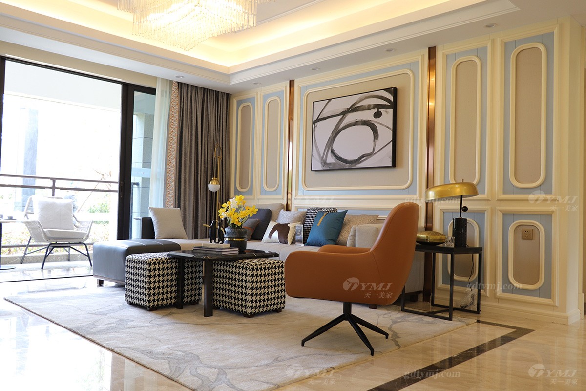 项目介绍:本项目户型为一套平层样板间,根据客户的想法和要求,星欧注册产品风格定位以现代时尚轻奢风为主,其中又带点新中式风格元素,搭配一些类似分红、橘色等暖色系的颜色,软装饰品方面搭配以清新、自然为主,以求整体营造出一种舒适温馨、清新自然的居家体验,很显然,效果非常不错,客户很是喜欢。
