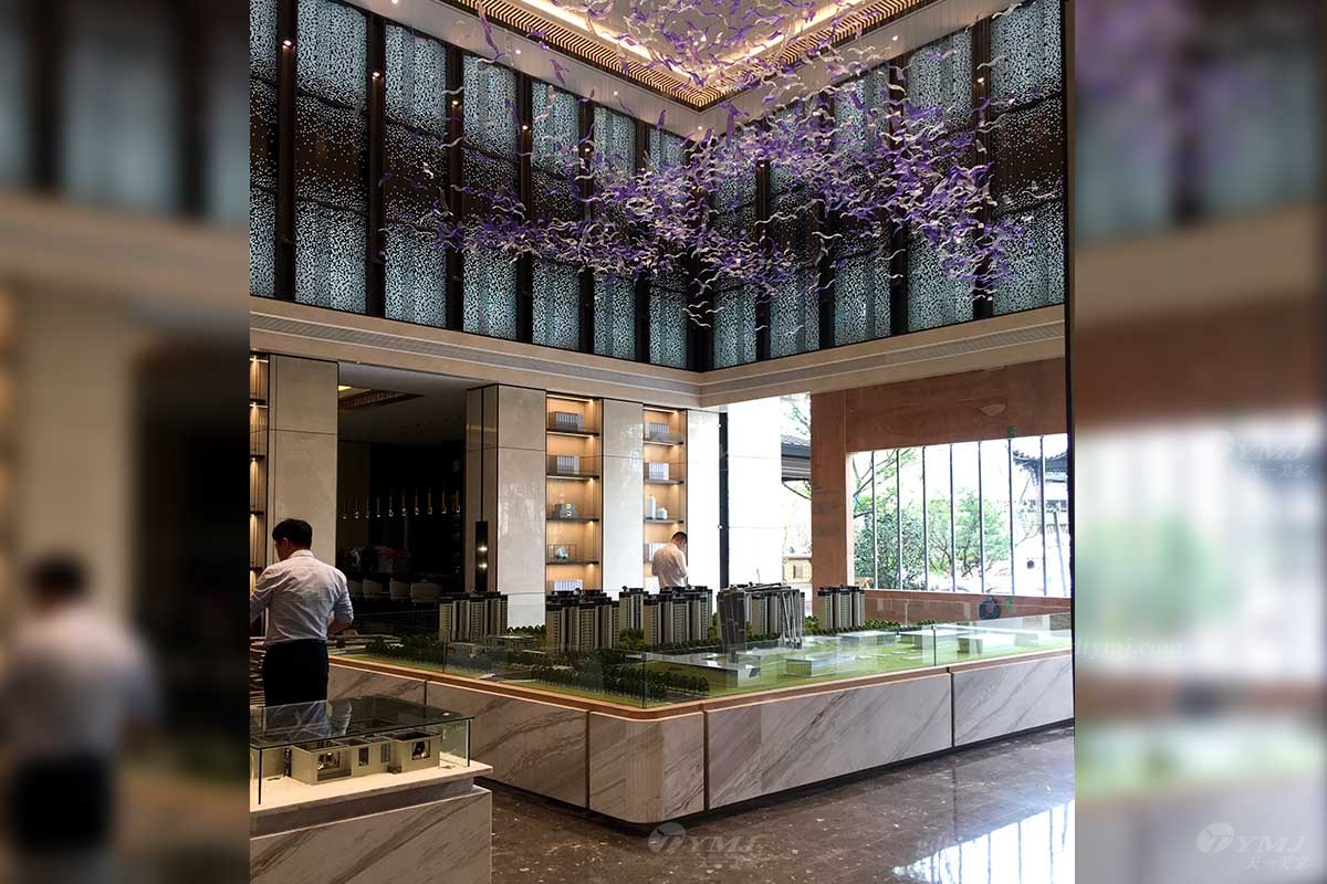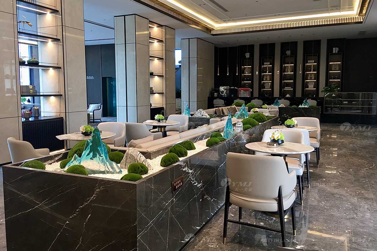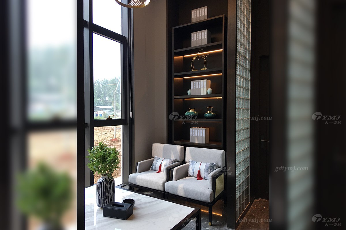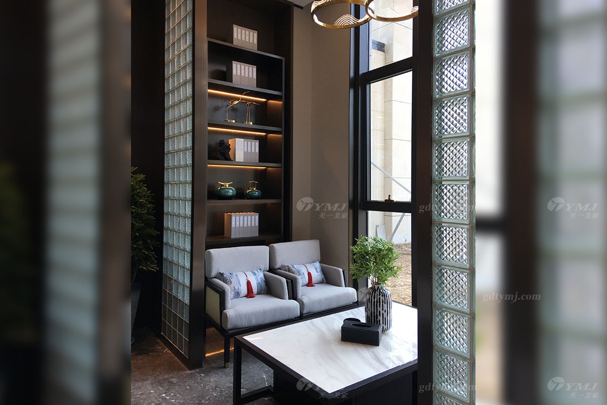 一楼售楼处,风格为新中式风格。巧妙的把中国的经典元素与新时代简约原理融合,既不失去中式的味道,也体现新时代的简洁与时尚。这就是新中式的独有的性质与特征。