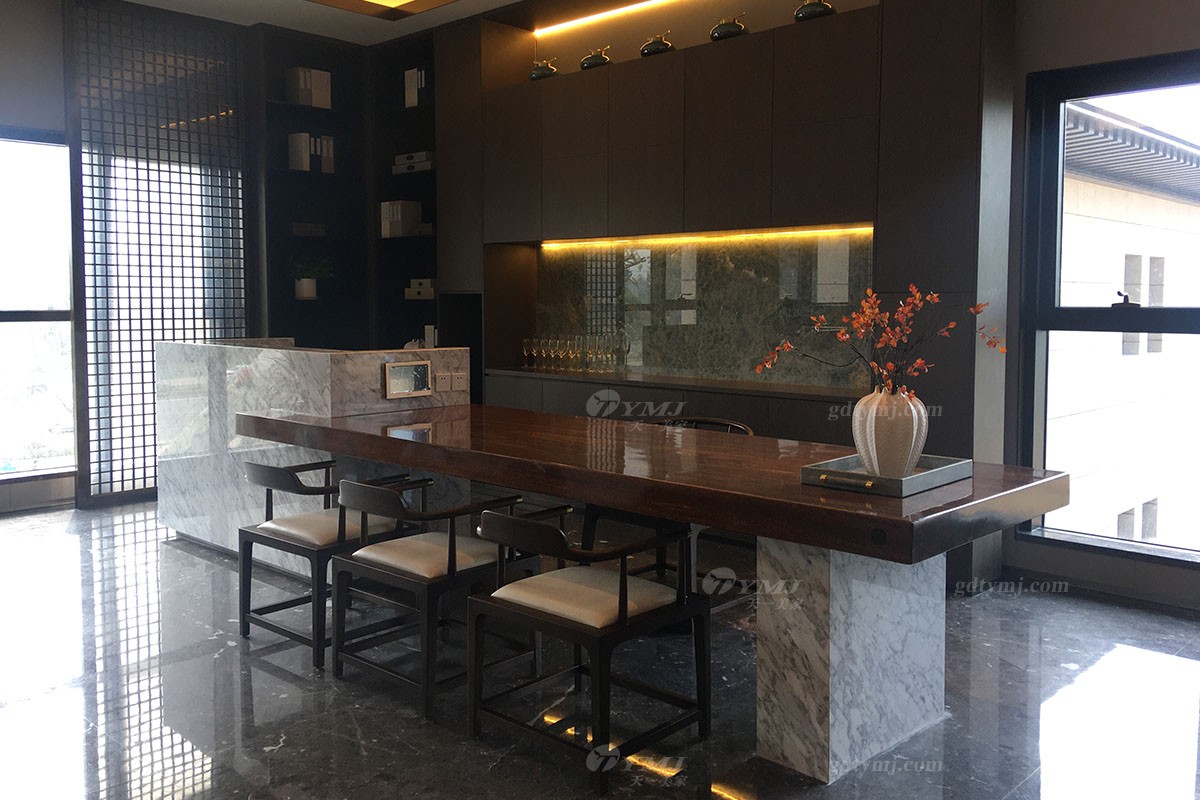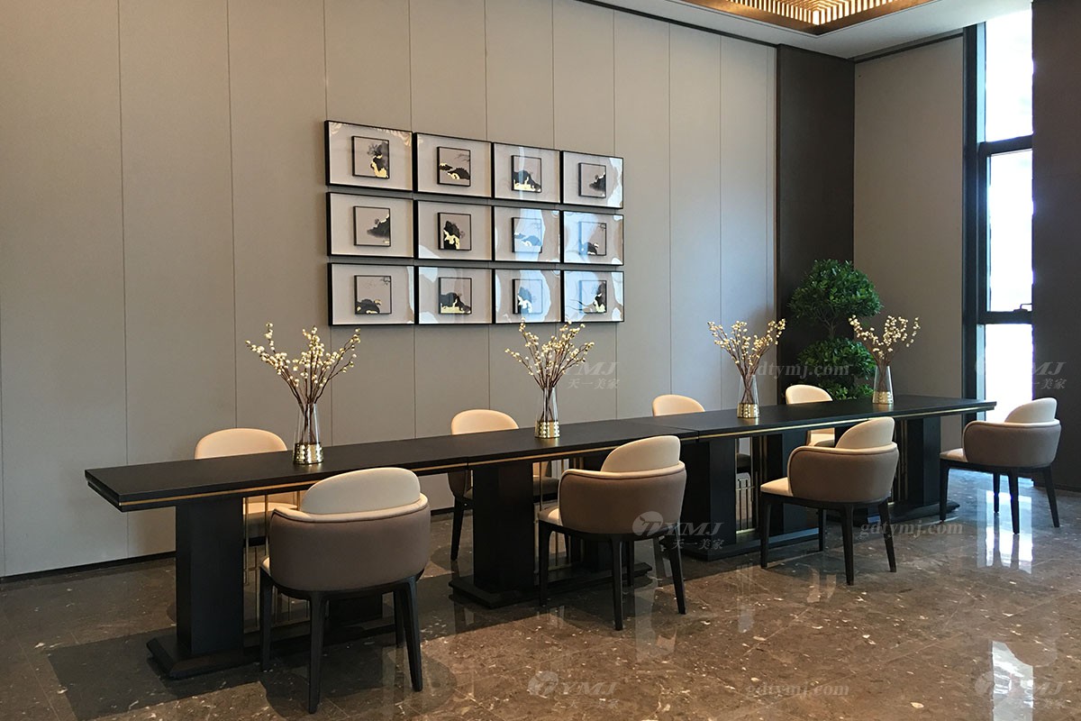 办公区的办公星欧注册,选色鲜明,柠檬绿作为隔离板。整体感觉活跃充满活力。董事长办公室,依然是选用新中式的风格为主。大理石的背景墙与吊灯搭配,把吊灯的光反光在背景大理石上,顿时办公室里气场十足,高端而不奢华,沉稳而不高调。圆形餐桌的黑金色搭配,诠释出既张扬又稳重的豪奢感。暗金色带菱格纹的皮革,精细地包裹于餐椅的黑色框架中,柔和洗练的腿部线条以一点点的镀金,呼应了整套组合,演绎了360度无死角的完美效果。