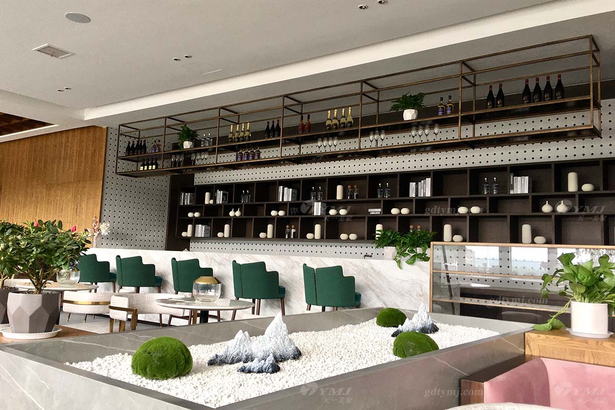 四层咖啡书吧还是运用了现代轻奢风格,吧台面用的是大理石,一来凸显高贵。二来营造宁静的感觉,周边也增加了不少绿植,不仅可以美化环境,还可以放松客户的心情。可以在这个宁静的咖啡书吧里,静静的品尝咖啡的同时,尽情的阅读书本。