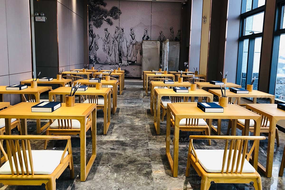 项目介绍:本案是以现代简约风格作为设计理念,以黑色、白色为基调色,搭配咖色、蓝色、黄色犹如点睛之笔,让个整空间色彩富有层次灵动感,简约而不平凡,白色时尚的洽谈椅、黑色的洽谈桌,显得格外清爽干净,让每一位洽谈的客人有一种黑白分明、眼前一亮的感觉,娱乐休闲区的中式书桌、书椅,浓厚传统文化象征的山水背景墙面,犹如穿越回古代私塾教学的场景,甚是有趣,总之,整个空间很好的融合了酒泉当地文化和现代时尚元素,深得客户肯定!