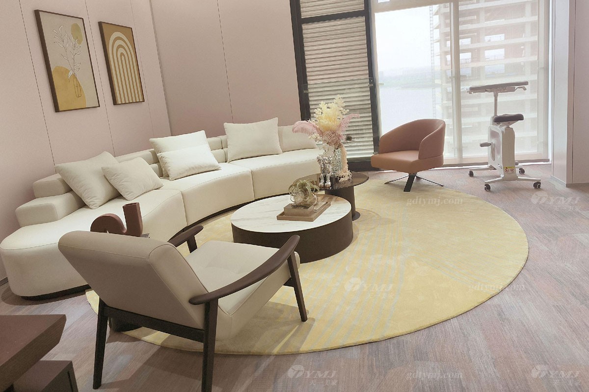 大气柔美的弧形沙发,和整个空间的色调,都显得十分柔和