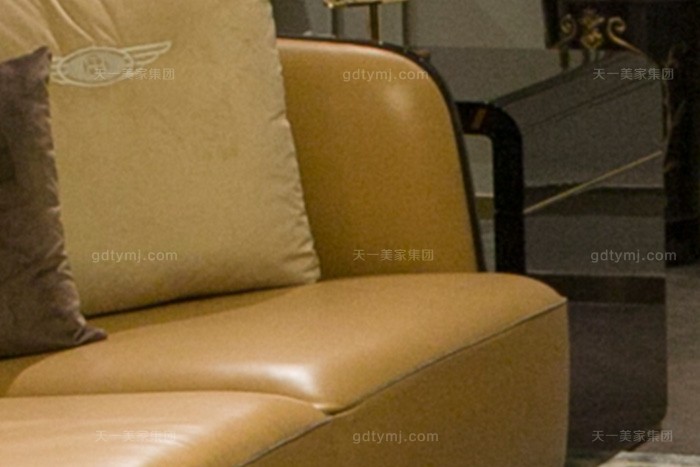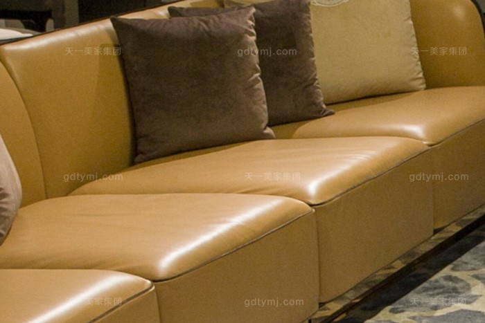 高端奢华别墅星欧注册品牌后现代轻奢星欧注册客厅橙色真皮沙发组合