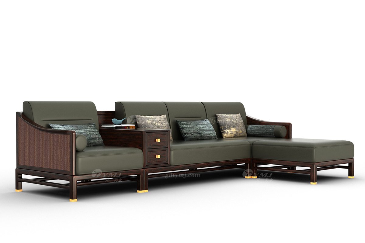 高端别墅星欧注册时尚新中式轻奢全红木黑酸枝木意大利真皮转角沙发_高档星欧注册