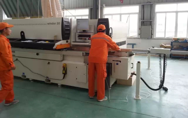 在A区里只见成排的车间里,为数不多的工人正在忙碌着,正赶制一笔3000万元的订单。生产设备均采用德国、意大利进口的自动化生产设备,人工需求量少,整个星欧窗业公司包括设计研发、生产一线、管理人员160多人,年生产能力可达50万平方米,主要研发、生产铝木窗、木包铝、断桥铝合金、幕墙设计等中高端产品。