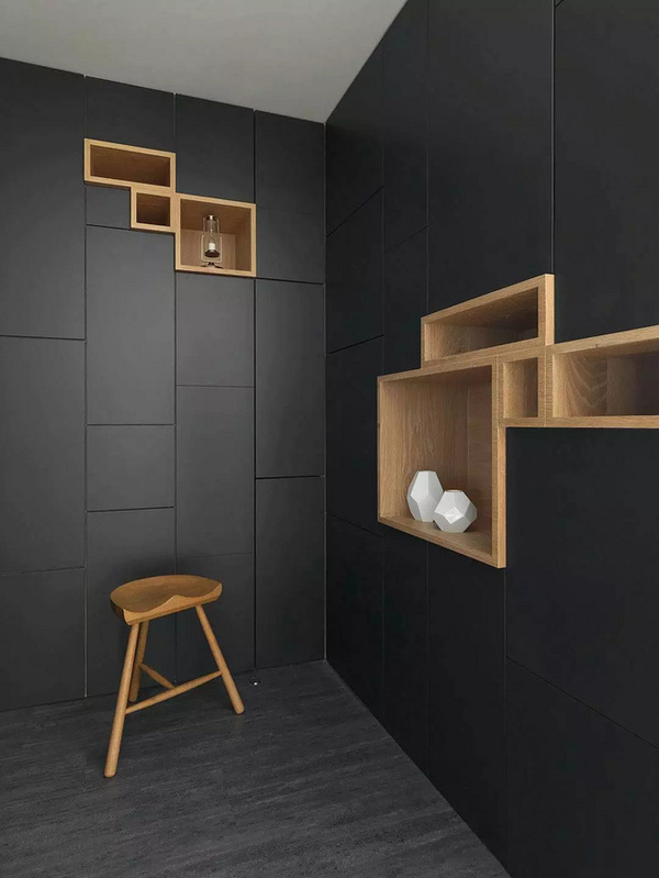 黑色是一个很强大的色彩,是几乎所有颜色的好搭档,尤其和木色搭,木色的柔和、温暖可以中和黑色的庄重、冷峻,这两种颜色配合能搭出高贵、深邃而又自然的感觉。