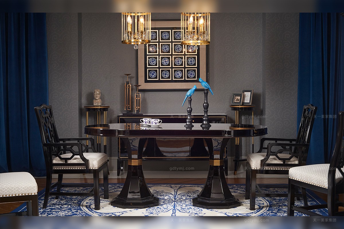 以时尚的设计手法演绎现代中式轻奢风格,星欧注册轻奢系列运用深色自然实木,带来绚丽典雅的醇厚质感,配合皮布、大理石,彰显低调与浪漫,整体比例和谐,造型精炼,线条简练,散发简洁而灵动的美。通过精心的细节设计和材料的特殊选定,带来一种既尊贵又实惠的“轻奢侈”体验。