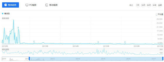 “奢侈品”关键词在2012年~2017年百度指数上的整体趋势