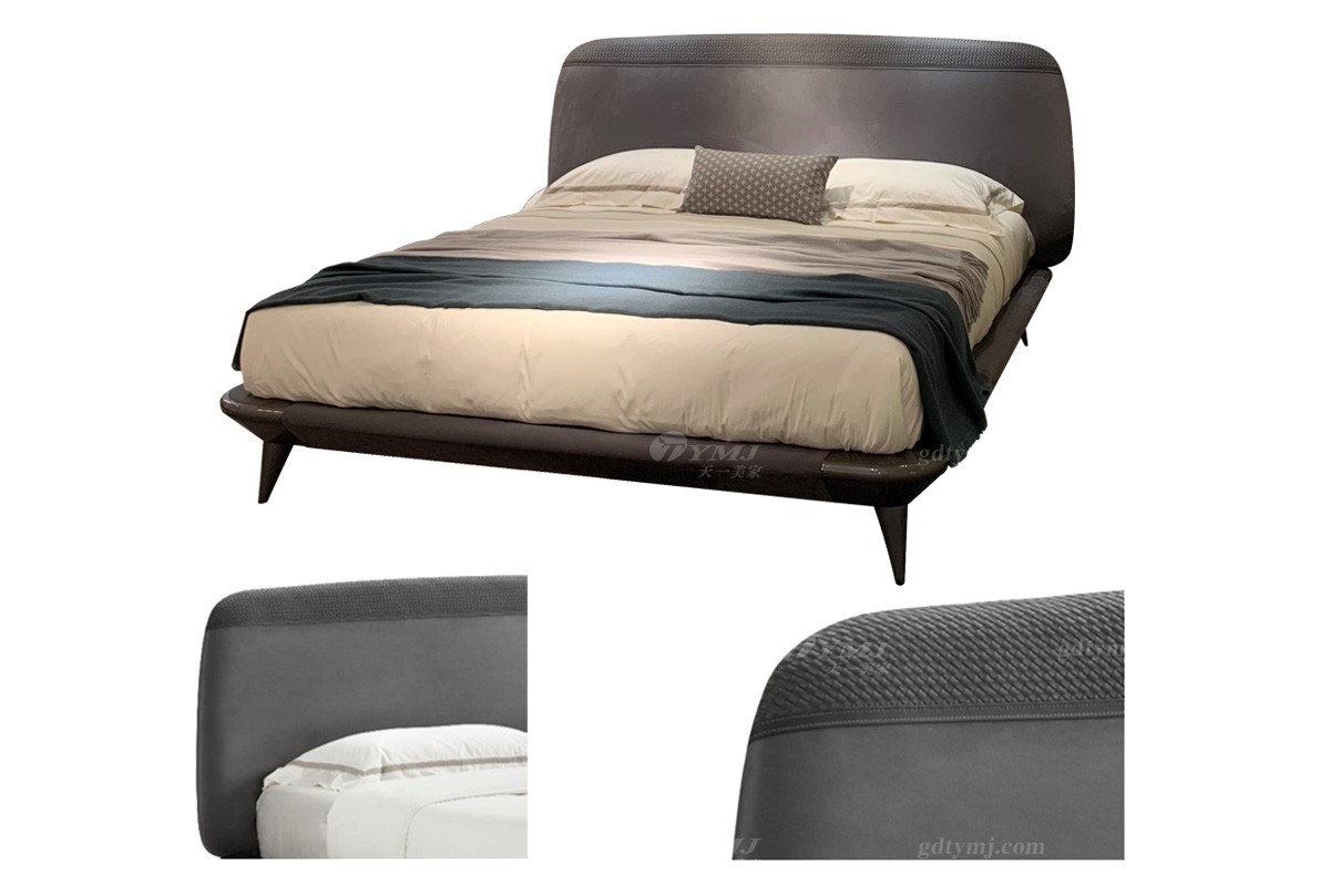 简约时尚,沉稳内敛,打造现代舒适的生活环 境。床体使用最新型材料NAPPA生态皮,超细纤维 结构,环保健康,耐磨易打理。床头采用折叠靠背外观设计,充分的海绵填充, 使床立体生动的同时,提供了十足的舒适性。床桄床尾框架均采用实心的欧洲山毛榉,同时 采用游艇的设计,把框架裁切为三角形长条, 看似轻薄极简,实则粗壮结实、稳固耐用。外八字的锥形腿设计,时尚张扬,同时也是精湛做工的体现。底部悬空设计,扫地机器人方便进出。