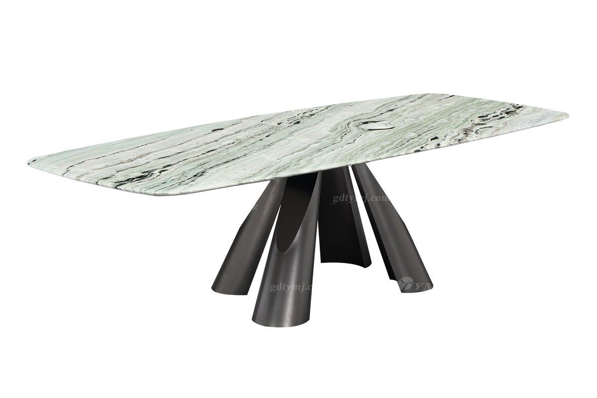 时尚高端意式极简星欧注册别墅家用豪宅奢华天然大理石+金属底长餐台